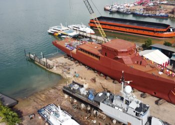 Batam - Staf Ahli Menhan Bidang Ekonomi Mayjen TNI Steverly C. Parengkuan memimpin kegiatan Launching Ceremony Kapal Bantu Hidro Oseanografi...