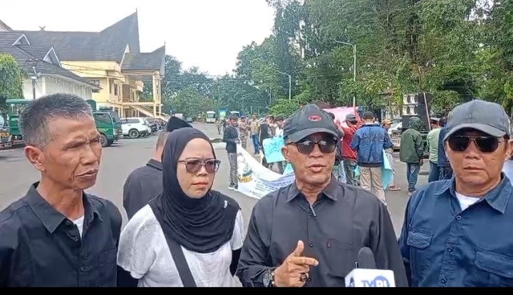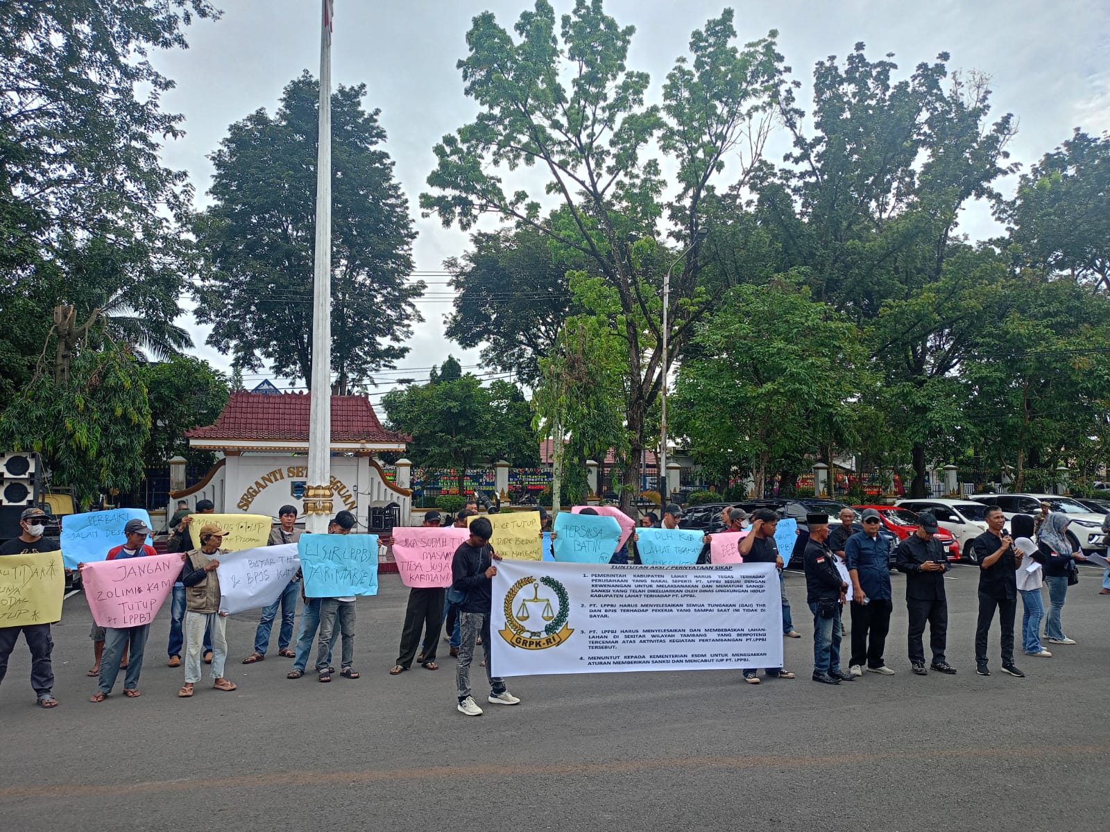 LAHAT l selatan.news – Sejumlah massa yang tergabung dalam Gerakan Rakyat Peduli Keadilan (GRPK RI) dan perwakilan eks karyawan menggelar aksi unjuk rasa di halaman Pemerintah Kabupaten Lahat, Kamis (23/4/2026). Aksi tersebut dilakukan sebagai bentuk protes terhadap berbagai dugaan permasalahan yang melibatkan PT LPPBJ.