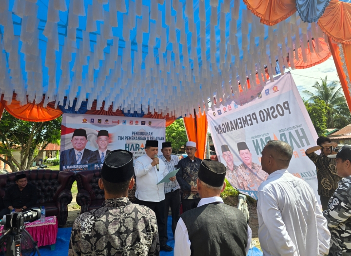 Simangambat – Pasangan Calon Bupati dan Wakil Bupati Padang Lawas Utara (Paluta) Hamsiruddin Siregar RCM dan Purba Hasibuan (HARAPAN) mengukuhkan Tim Pemenangan Kecamatan Ujung Batu dan Simangambat, di Desa Jambu Tonang, pada Hari Jum’at, 13 September 2024.