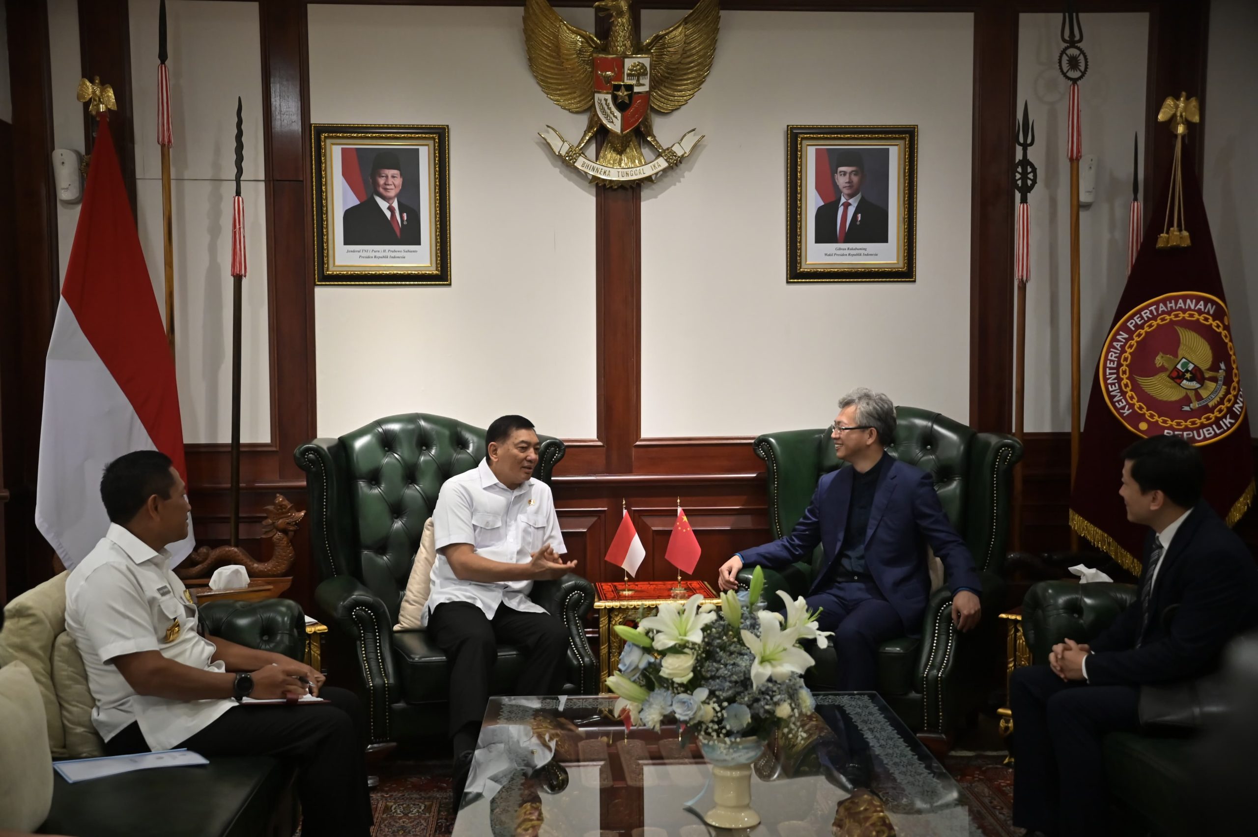 Turut hadir pejabat Kemhan yang mendampingi Menhan Sjafrie dalam pertemuan dengan Dubes China yaitu Wamenhan dan Dirkersinhan Ditjen Strahan Kemhan. (Biro Humas Setjen Kemhan)